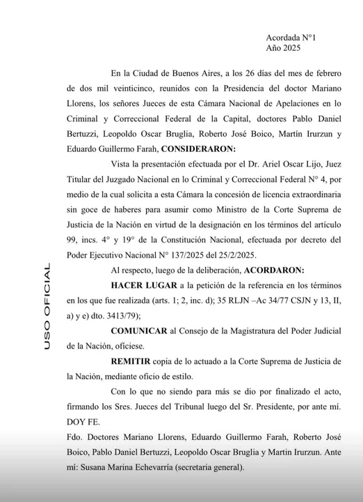 La Cámara Federal de Apelaciones en lo Criminal y Correccional de la Capital aceptó el pedido especial de licencia de Ariel Lijo, lo que tornará aún más tensa la situación por su llegada a la Corte.