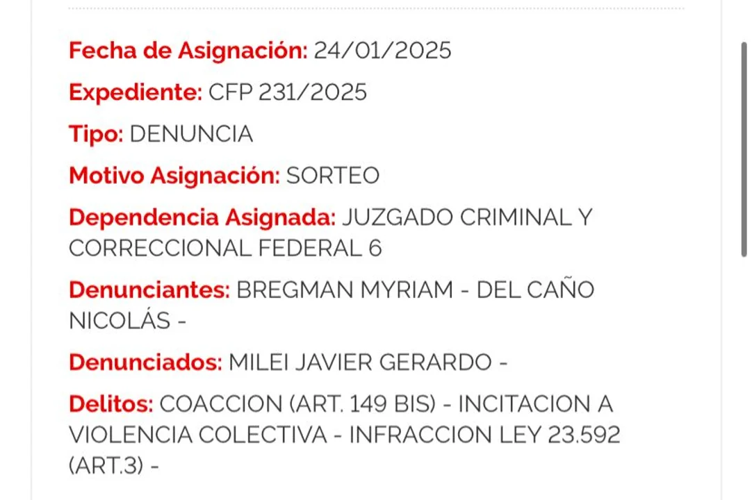 Por otro lado, el Consejo de Coordinación del Círculo Podemos Argentina, con sede en Campana, también llevó el caso a la Justicia Federal de esa localidad. Este grupo denunció que las declaraciones de Milei no solo violan la Ley de Actos Discriminatorios, sino que además configuran una estrategia de odio sostenida desde el Estado.