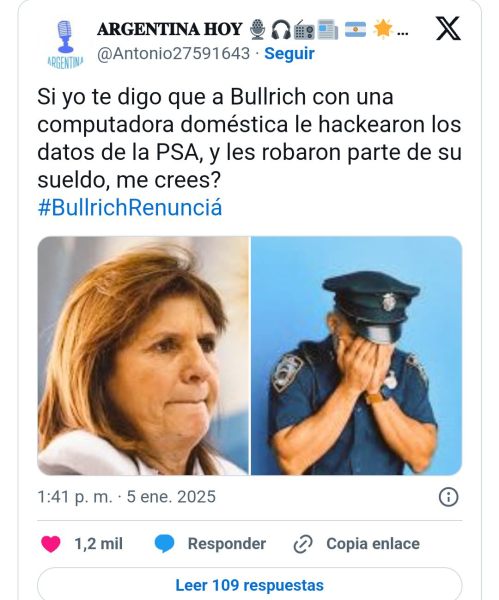 ¡Increíble pero real desde un computadora domestica!: La ministra Bullrich tiene que meterse el ciberpatrullaje en el bolsillo le hackean a la PSA y desaparecen los sueldos