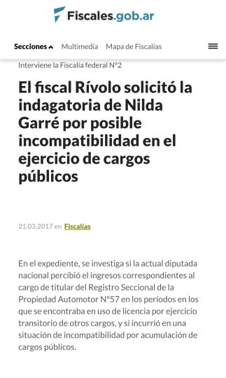 Al apelar, la fiscalía sostuvo que falta prueba en la causa «en tanto no se logró descartar la hipótesis acusatoria vinculada al cobro simultáneo por parte de Garré de emolumentos y una jubilación cuando eso se encontraba vedado por la ley vigente».