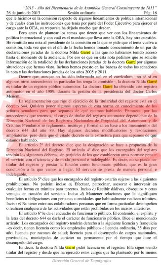 «Resta determinar si Garré percibió y dispuso de los emolumentos correspondientes al Registro Automotor Seccional N°57 a pesar de hallarse en uso de licencia y mientras ocupaba otros cargos públicos. Asimismo, huelga establecer a través de qué medio se accedió a las cuentas bancarias del registro fines, mencionado en el periodo comprendido en la imputación», advirtió el Tribunal.