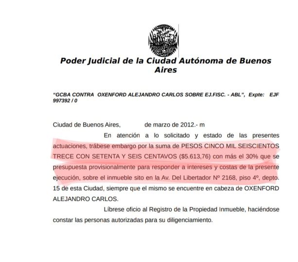 DOCUMENTACION Y OFICIO DE EMBARGO POR EVASION FISCAL AL GOBIERNO PORTEÑO