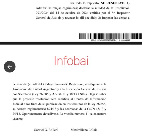 A través de un fallo de la Cámara Civil de la Nación, se advierte que, luego de la apelación presentada por la AFA, «el recurso debe ser admitido al comprobar que el acto administrativo padece una nulidad absoluta e insalvable«.