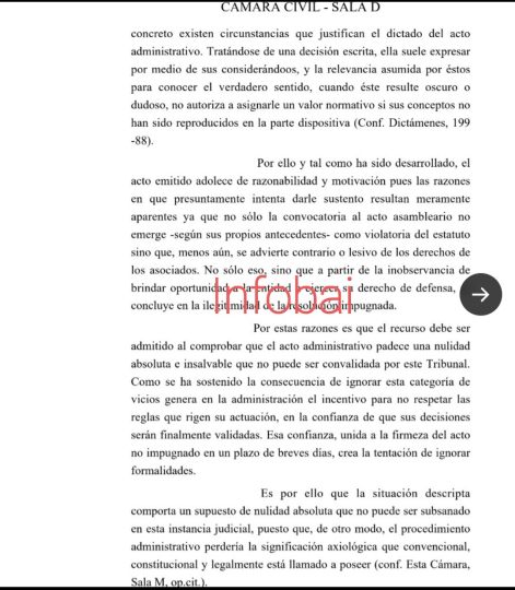 Además, la Justicia criticó el accionar de la Inspección General de Justicia por emitir un acto que «adolece de razonabilidad». Por el contrario, marca su «ilegitimidad» por no permitir el «derecho a defensa».