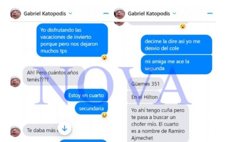 Desde los chats filtrados por la joven, se puede visualizar que ella le dio aviso de su corta edad, sin embargo Katopodis lo pasó por alto. Asimismo, se estima que desde una cuenta de Facebook secundaria se encargó de abordarla, como se presupone que lo habría hecho con más mujeres.