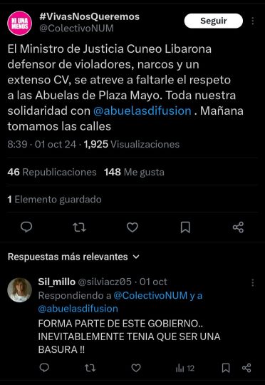 El envío de los pliegos se da en medio de fuertes rumores por una posible salida del gobierno del ministro de Justicia de la Nación, Mariano Cuneo Libarona. Más allá de las pocas gestiones con los sectores judiciales, el gran punto de incompatibilidad del funcionario con el gobierno sería los clientes que mantiene su estudio, principalmente en juicios por defraudación al Estado, como el caso de la minera NRG, elevada a juicio por una operación de rulo financiero y sobre facturación de importaciones con aportes de Homeland Security de Estados Unidos, donde los Cúneo lograron frenar el inicio del juicio oral.