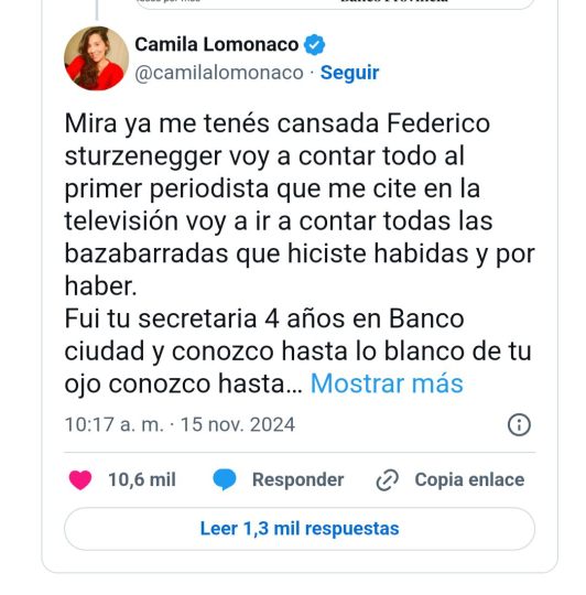 El Ministro de Desregulación del Estado, Federico Sturzenegger, enfrenta graves acusaciones de abuso sexual, maltrato laboral y psicológico por parte de su exsecretaria, Camila Lomonaco, que través de un extenso mensaje en su cuenta de la red social X, reveló detalles sobre las situaciones de las que fue víctima mientras trabajaba bajo la dirección del funcionario nacional, cuando este era directivo en el Banco Ciudad.