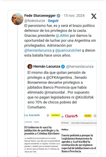 La víctima también cuestionó el discurso de Sturzenegger como defensor de la «anti-casta», señalando que ha vivido siempre de la administración pública. «Tus hijos viven en Europa, vos fuiste a Harvard, viviste toda la vida de la administración pública. Decime cómo vos no sos la casta», expresó.