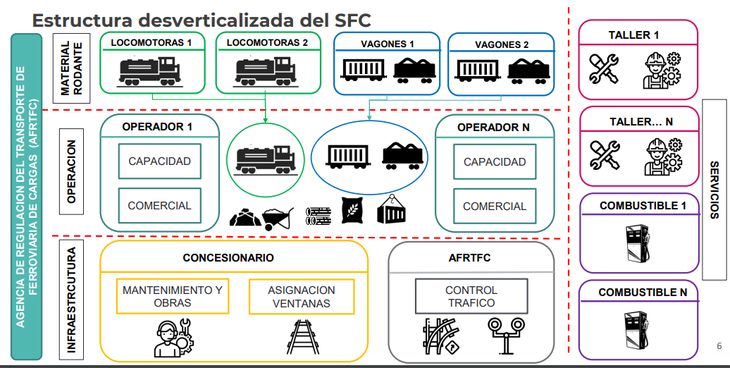 “La desverticalización con Open Access es justamente dividir la empresa en distintas concesiones. Por un lado, se va a concesionar la administración y mantenimiento de la infraestructura, que es en definitiva quien va a administrar los derechos de paso, va a negociar la tarifa por esos derechos de paso, cuánto va a cobrar el peaje, a quién va a ser el otro que es el que opera el tren”, explicó el funcionario.