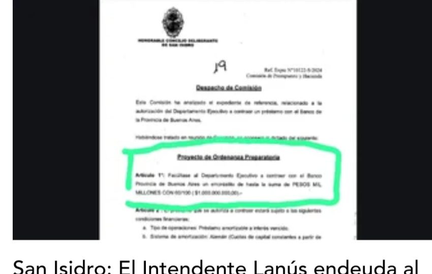 El intendente de San IsidroRamón Lanús, avanzó en la contratación de un préstamo de mil millones de pesos con el Banco Provincia. Este préstamo, promovido bajo la justificación de obras de infraestructura y adquisición de equipamiento hospitalario, compromete los fondos municipales a través de una garantía que incluye la coparticipación impositiva.