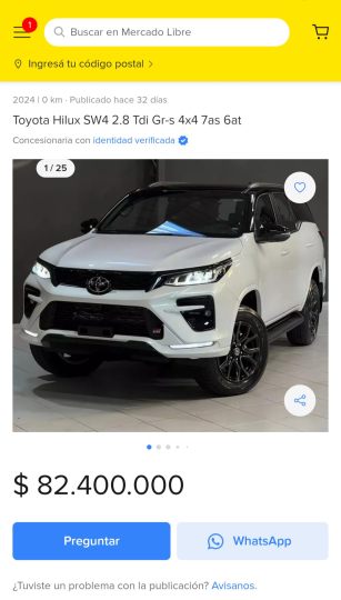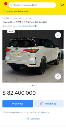 La camioneta Toyota SW4 es un modelo de alta gama, cuyo costo ronda los 80 millones de pesos, pero puede superar esa cifra según la versión y los accesorios. Este dato incrementa las sospechas sobre el origen de los fondos utilizados para su compra, dado el contexto económico actual.