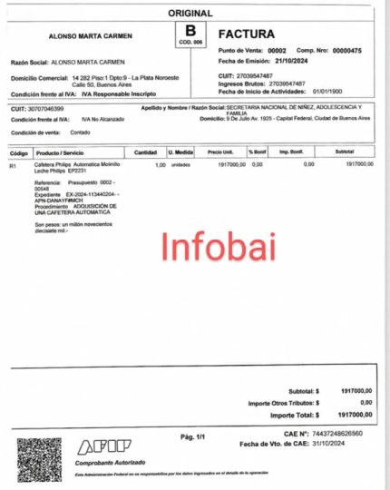 Los gastos provienen de la Secretaría de Niñez, Adolescencia y Familia, a cargo de Yanina Nano Lembo. Según trascendió, la cartera adquirió la semana pasada una cafetera automática por casi 2 millones de pesos. Se trata de un electrodoméstico automático marca “Phillips”, con un dispositivo para leche, cuya compra fue firmada por Nano Lembo y el director patrimonial Fabricio Mariano Piazzi.
